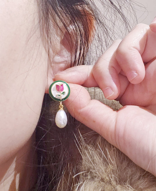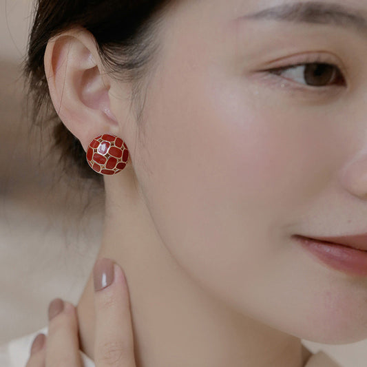 925 Sterling Silver Enamel Red Cookies 24K Gold Eletroplated Earring
