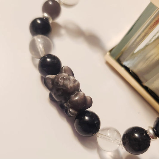 Handmade Crystal Bracelet- Obsidian Fox