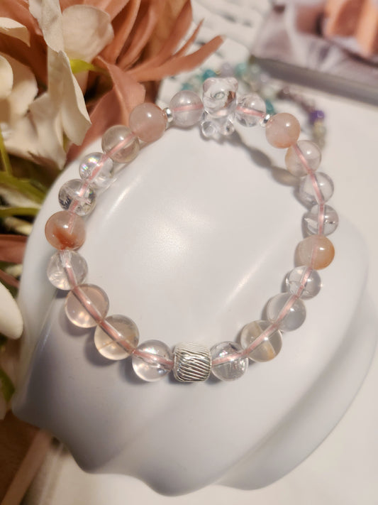 S925 sterling Silver Handmade Crystal Bracelet- Rustic Elegance