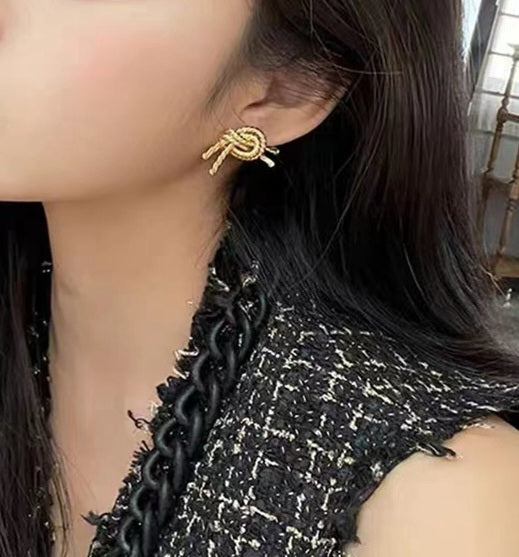 925 Sterling Silver Twisted Knot 18K Gold Plated Earring