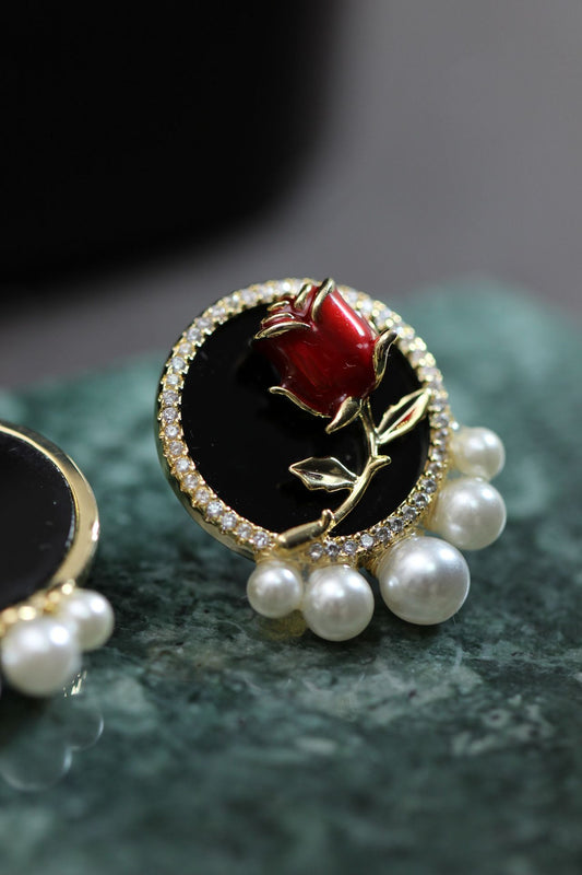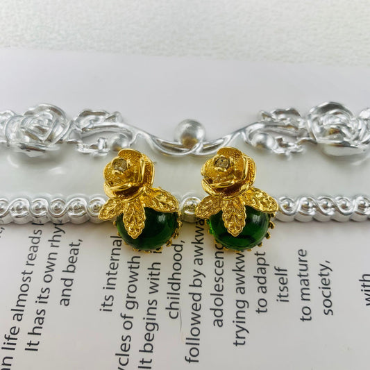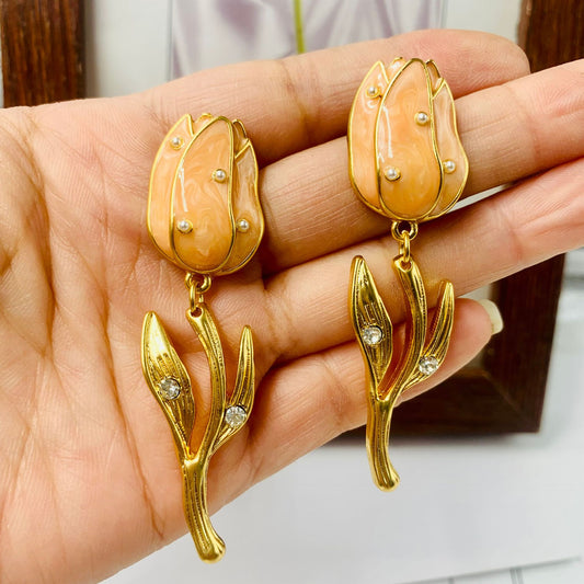 Vintage Enamel Tulip 18K Gold Plated Earring