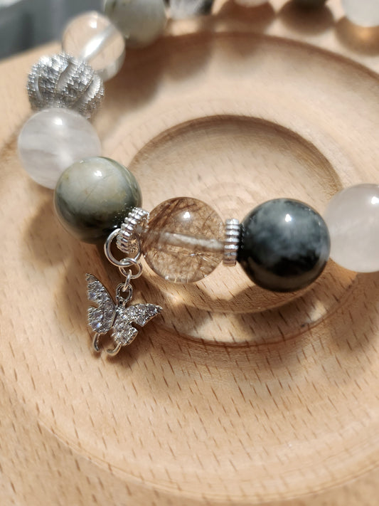 S925 sterling Silver Handmade Crystal Bracelet- Rustic Elegance